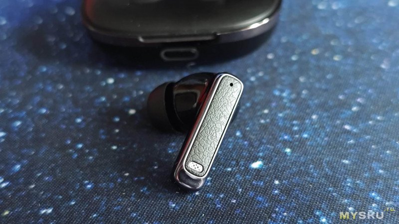 Отличает эти наушники двойная система управления: с помощью сенсорных поверхностей на самих наушниках и встроенного Bluetooth-пульта, расположенного на зарядном кейсе. Сенсорная поверхность у наушников плоская с шероховатой фактурой. Это большой плюс, ложных или ошибочных нажатий нет вообще.
