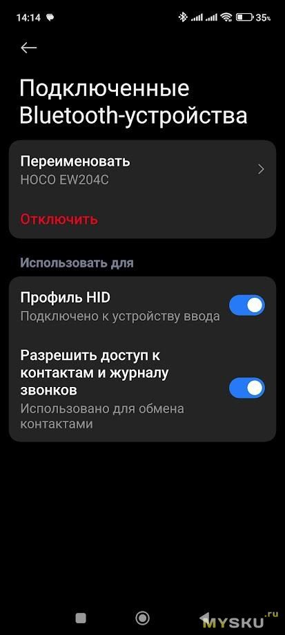 Кейсу также требуется предоставление разрешения на доступ к контактам и журналу звонков. После успешного сопряжения в устройствах появляется еще одна строчка Hoco EA204, но уже с индексом C на конце. И для наушников и для кейса доступно отображение уровня заряда аккумулятора.
