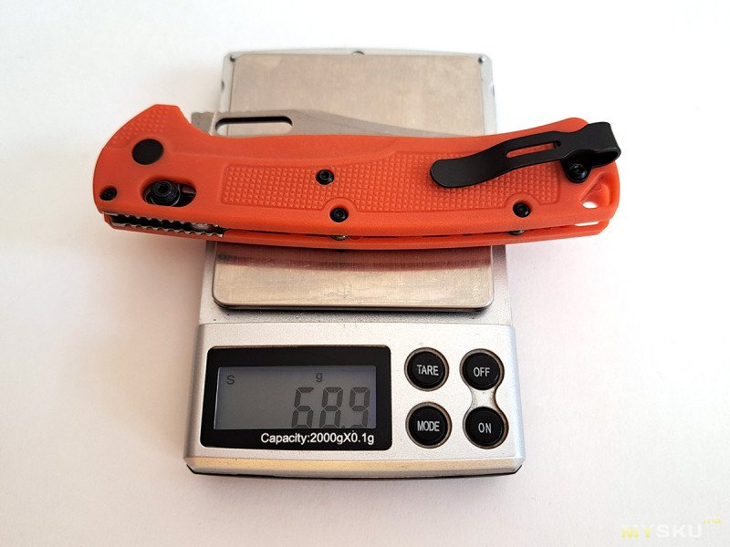 Весит ножик 69 г. Неплохо для среднеразмерного ножика. Как конкурента Багауту, я его не рассматриваю.
