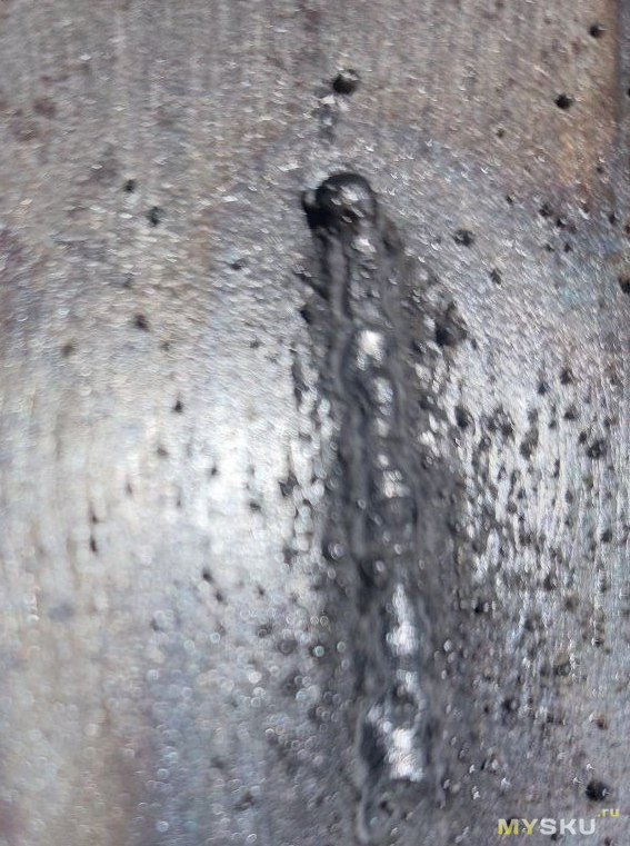 Брызги от флюса присутствуют, а сварной шов хорошо просматривается.