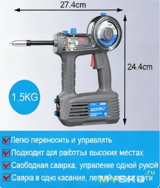 • Метод сварки: Только MIG No Gas (FCAW) — сварка порошковой (флюсовой) проволокой без использования газовых баллонов.