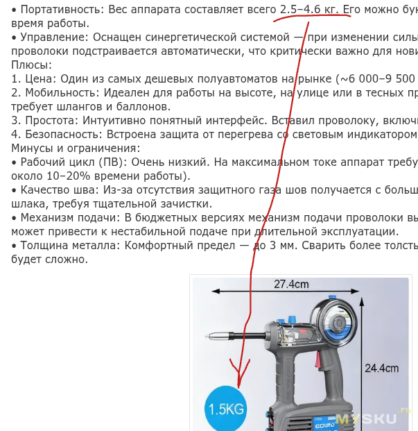 на дачевозникают частенько когда варишь не на столе :) Так же не во всех магазинах есть порошковая проволока — для дачи это может быть актуально… В общем, для дачи наиболее подходит классический электродный инвертор — лёгонький, висит на плече, а в руках ещё более лёгкий держатель… А для мастерской — полноценный большой полуавтомат с баллоном. Эта же штука как-то ни туда и ни сюда.Конечно, очень многое зависит именно от характера выполняемых работ. Одно дело варить уголки со швеллерами (на условном заборе, воротах или калитке) на сравнительно свободном пространстве и совсем другое аккуратно в тисках или на верстаке в зажимах приварить какую-нить проушину или упор/штырь/гайку к более массивному основанию, но все это небольших размеров. (одну мелкую фигню к другой такой же мелкой фигне или не шибко больших размеров)