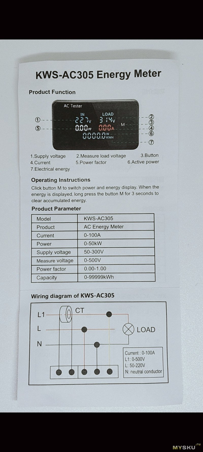 KOWSi KWS-AC305 - многофункциональный индикатор параметров переменной сети (до 300V) и характеристик подключаемых приборов (до 100А)