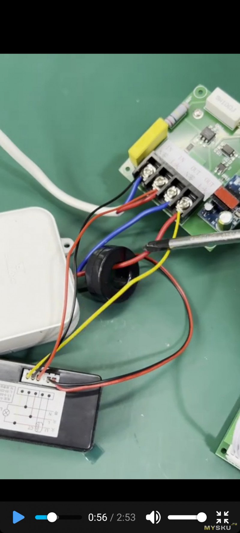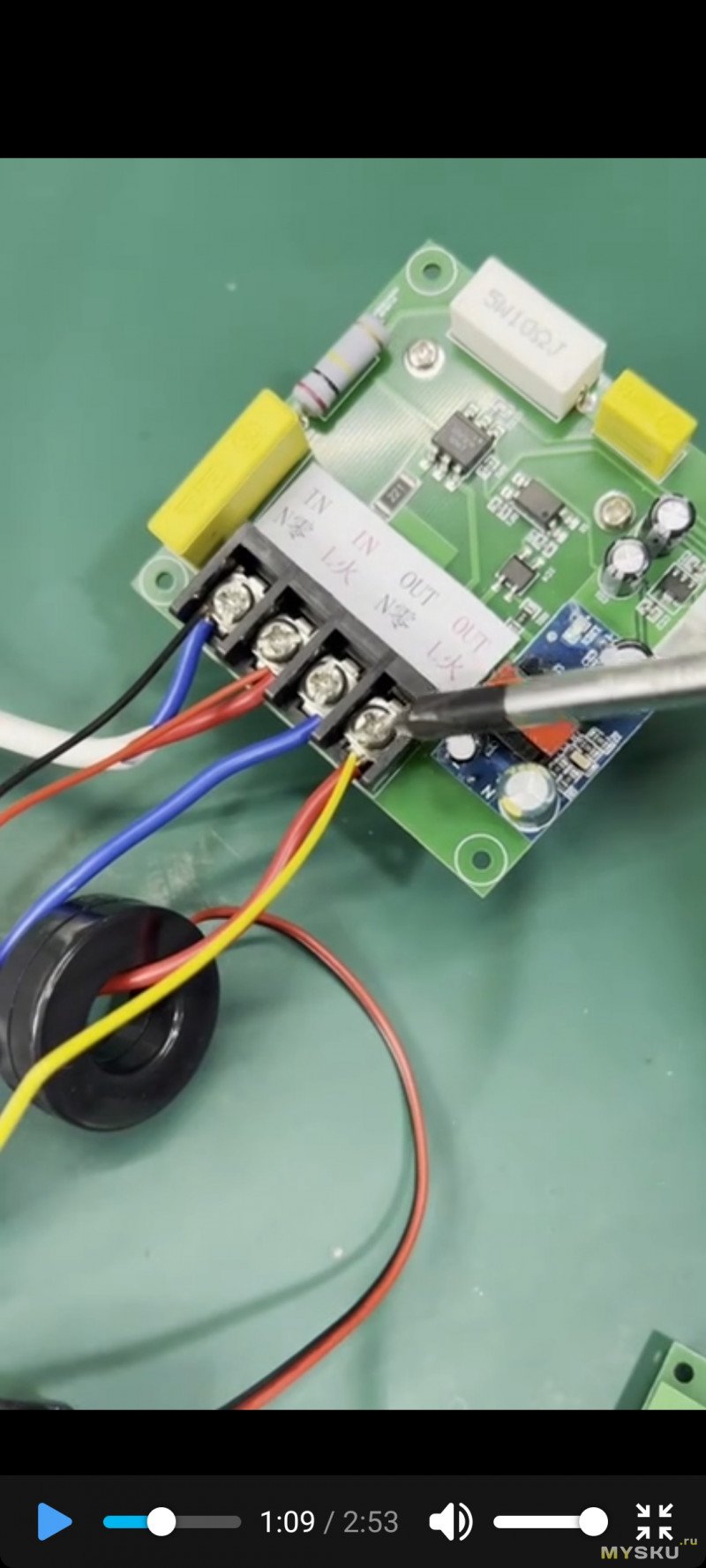 Кадры из видео с той страницы (снято будто специально, что б непонятно было куда что подключать, фокус в видео часто уплывал, поэтому четкие надписи входов на нагрузке приходилось ловить):