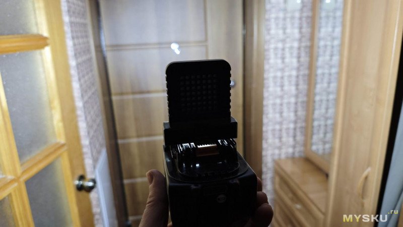 Во второй аккумулятор фонарик вставлялся гораздо тяжелее, из-за более тугих контактов батареи. Но зато держится в нём он гораздо надёжней. Не болтается и не выскакивает при тряске. Причём сначала, я вставил фонарик той же стороной, что и с первым аккумулятором, не обратив внимания на полярность, а она у этой батареи противоположная. Потом долго тупил, не понимая почему свет не включается.
