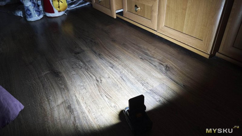 В обоих режимах яркости фонарик в силах уверенно осветить небольшое помещение холодным белым светом.
