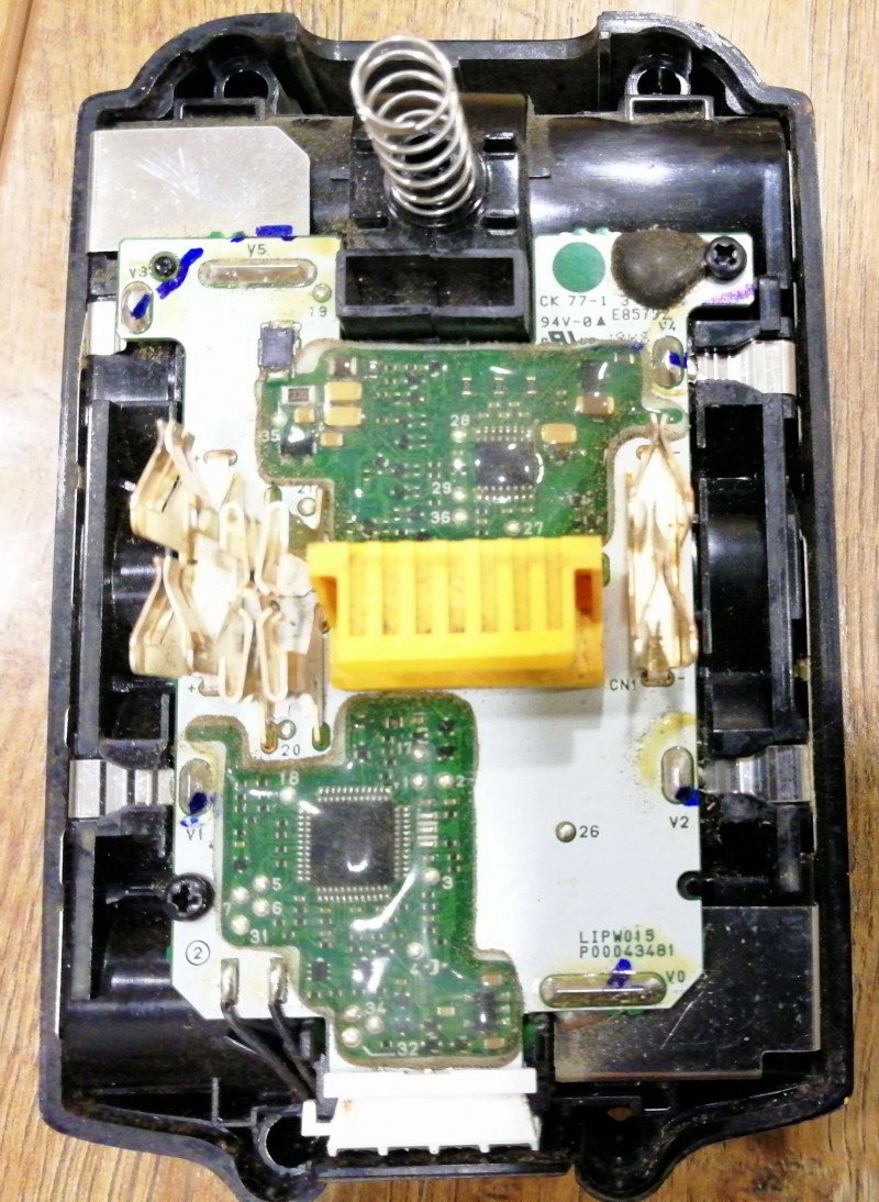 поэтому лучше считать что в оригинальных батареях силовых защит НЕТ. есть плюс на третьем контакте, который пропадает если что-то пошло не так и инструмент должен в этот момент вырубиться.
