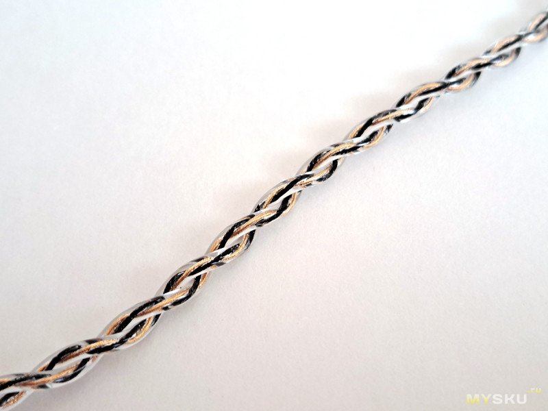 Сам кабель витой, достаточно мягкий. Сквозь прозрачную изоляцию видны жилы из посеребрённой меди высокой очистки OFC.