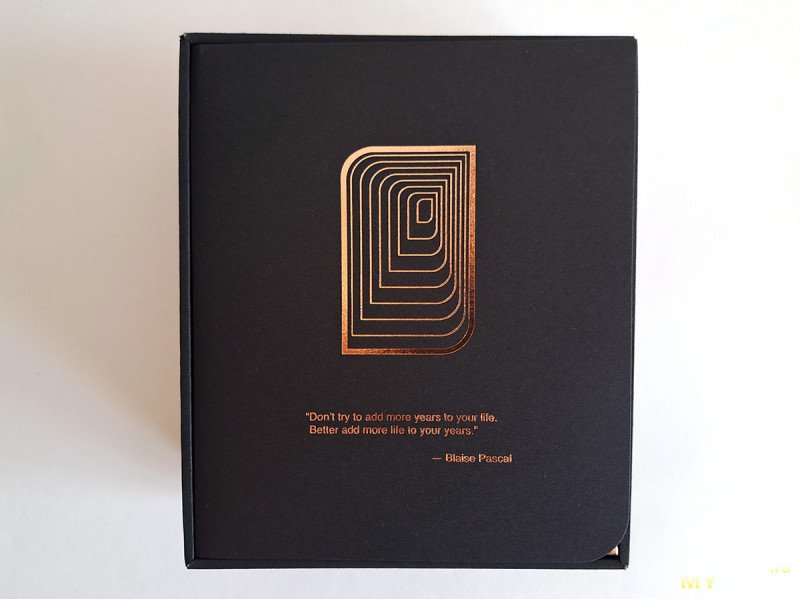 Основная коробка выглядит более строго, и встречает нас изречением французского ученого Блеза Паскаля.
