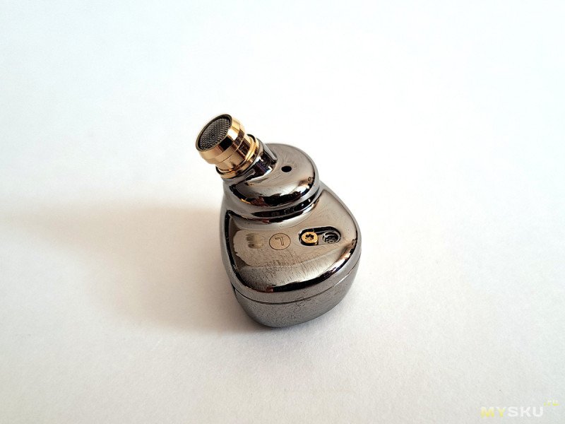 Также на корпусе можно заметить головку латунного винта, несомненно, несущую декоративную функцию. Рядом с ней, в углублении, расположено компенсационное отверстие. Второе отверстие расположено на корпусе рядом со звуководом. Как понимаю, каждое сообщается с инновационной акустической камерой.