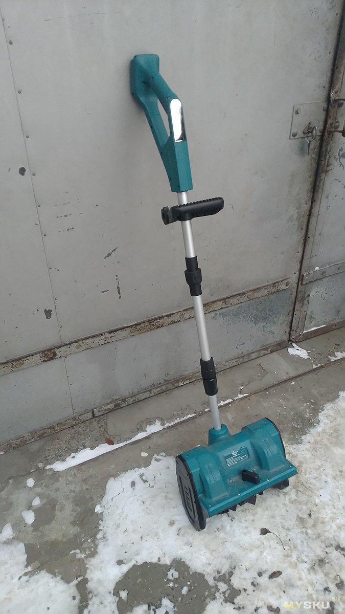 Впечатления от использования. Прикольно. Всё. Кидает снег не особо далеко — ну может быть 4 метра если удачно наклонить и прочие звёзды сойдутся, а так скорее до 3. Ширина захвата малая. Глубина тоже невелика — в 16см он тупо затыкается. Тоже самое с мокрым и плотным снегом. При этом помним что агрегат весит 4 кило, и таскать его прямо скажем заманаешься, особенно с учётом того что колёсиков нет, там только истираемая «лыжа», которая по асфальту скользит не особо хорошо, а по плитке еще и в швы может утыкаться. То есть я не могу сказать что он как-то заметно ускоряет или сильно упрощает работу — если вы думаете что просто походите рядом с ним туда-сюда и он всё сам сделает — нет, его придётся в одну сторону пихать, а в другую нести, а с учетом того что за раз он берет ну пусть даже 30см — находитесь туда-сюда вы прилично, и лопатой может оказаться даже быстрее, если она шире. Но возможно (хоть это и не точно) задолбаетесь при использовании снегоуборщика вы немного меньше.