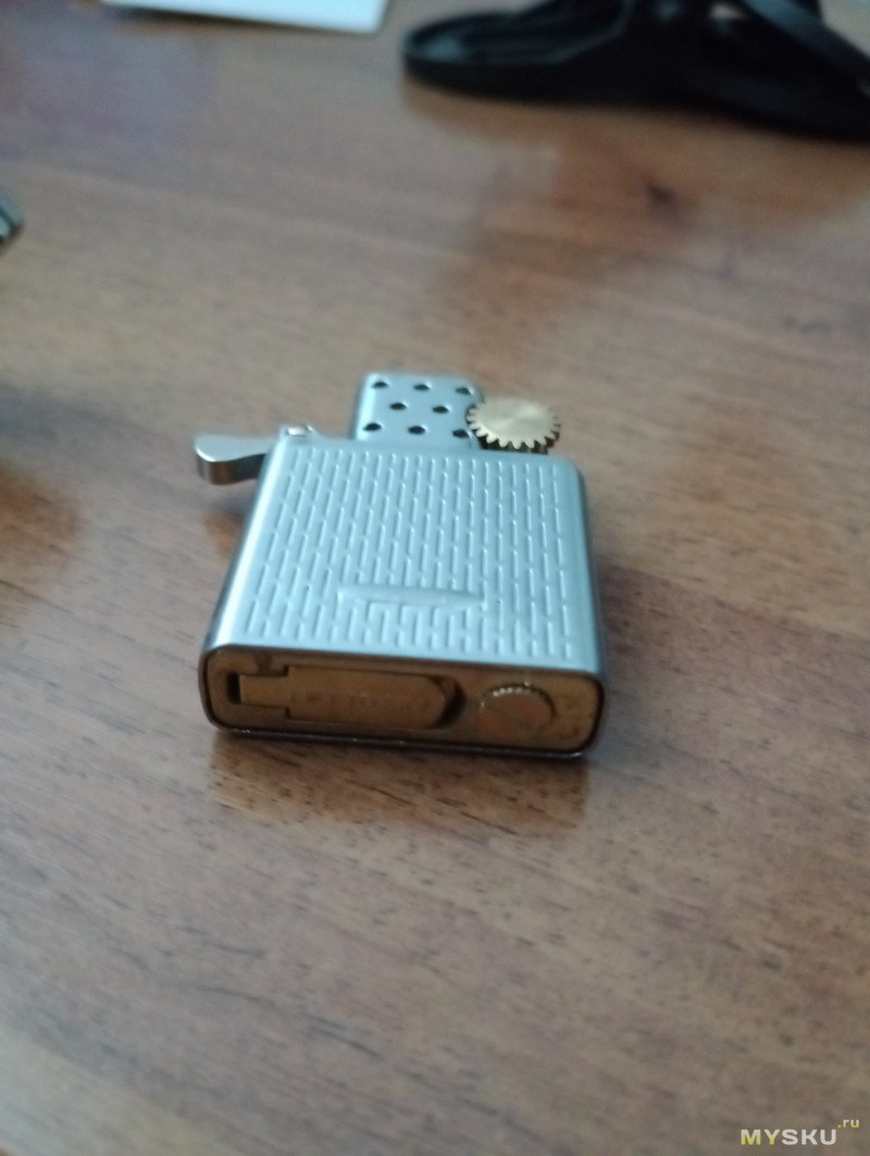 С помощью этой детали (как её назвать бы, для идентификации, не знаю, почти везде на страницах товара пишут «набор для зажигалки», так себе обозначение, имхо) я ещё надеюсь приподнимется инсерт в корпусе-чехле (обратите внимание на область кремня):