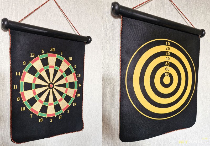 Даже с правилами ознакомили.Мишень (двухсторонняя) со шнурком для подвешивания: