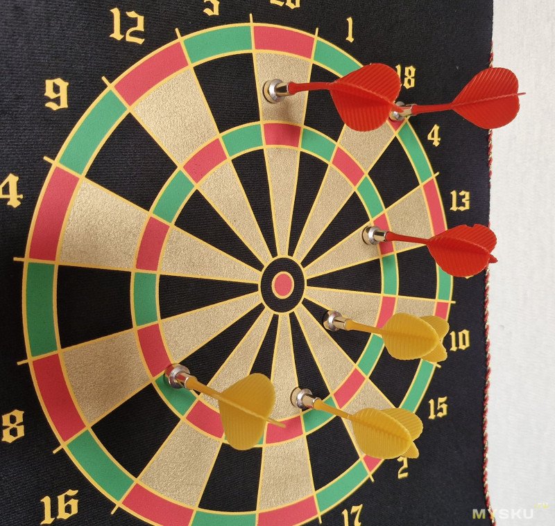 Дротики отваливаются очень редко с поля. Когда привыкаешь к траектории дротика, получается выбивать больше 50 очков легко. Но при неаккуратном обращении оперение дротиков иногда откручивается — в этом случае поможет лёгкий ремонт (капля клея).Итог