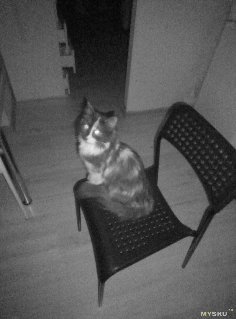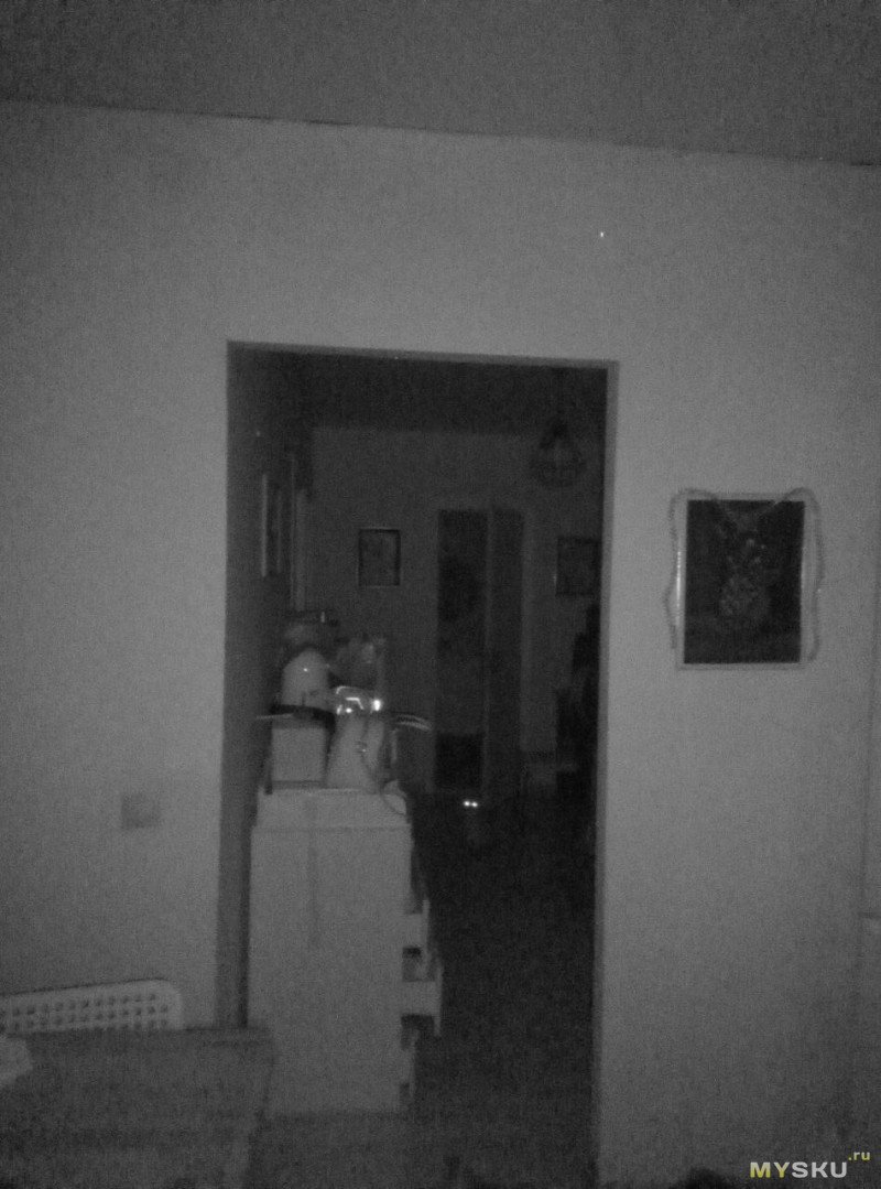 Сквозь дверную арку тоже проходит достаточно ИК излучения что бы осветить и комнату и коридор.Кису тоже хорошо можно разглядеть, не одна ты теперь в темноте хорошо видишь, падла ты шерстяная…