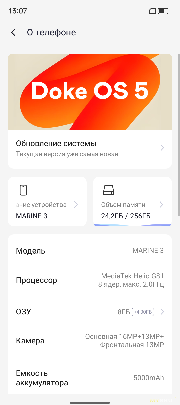 Ос имеет гордое название Doke Os связано это как нибудь с контейнерами или нет я не понял, но да ладно. Батарея 5000 mAh Много? Мало? На мой взгляд средненько. Первые пол года-год и в правду будет норм, полтора дня без зарядки выдержит. Дальше как аккум просядет, уже будет как стандартный смартфон, требующий каждодневной зарядки.