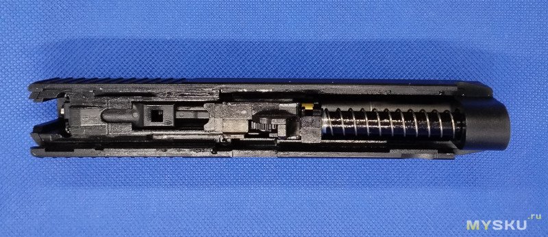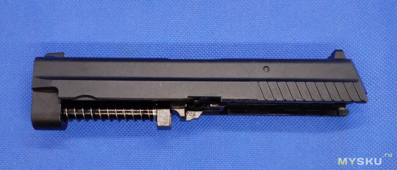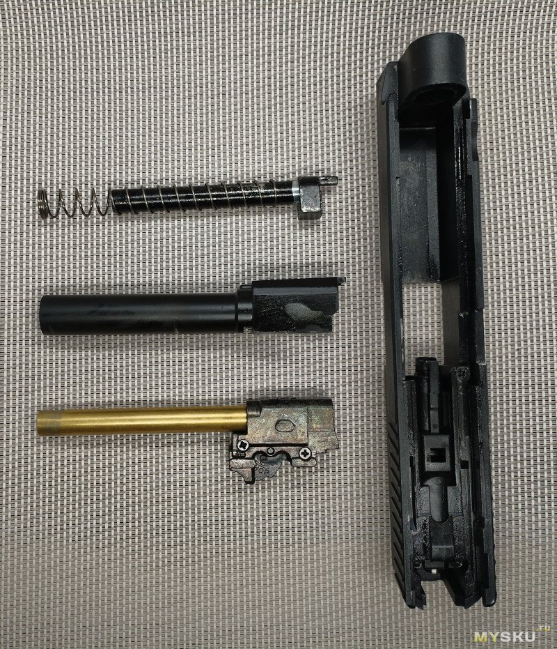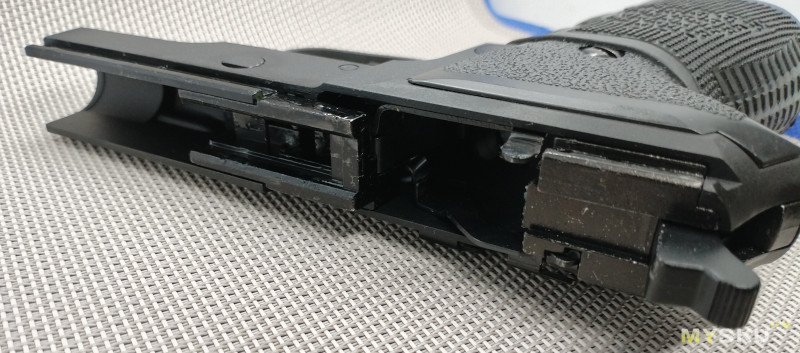 Неполная разборка пистолета простая, полностью соответствует огнестрельному образцу