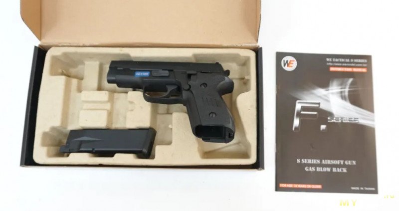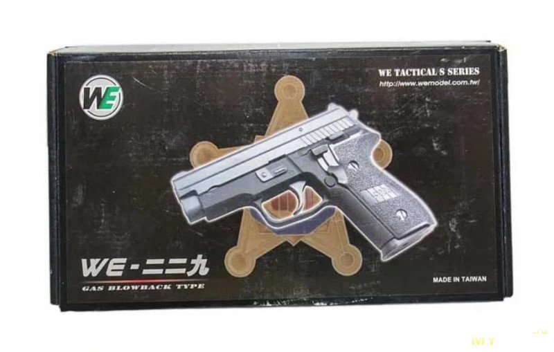 Итак, пистолет был куплен. Коробка самая простая WE-шная, ничего особенного.