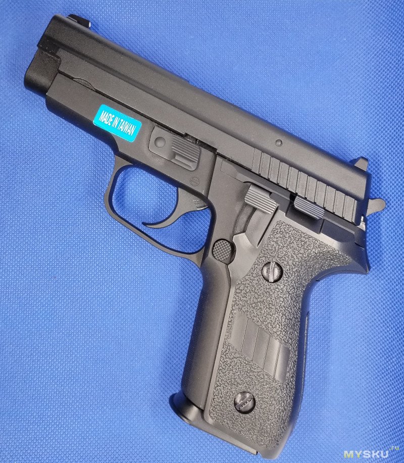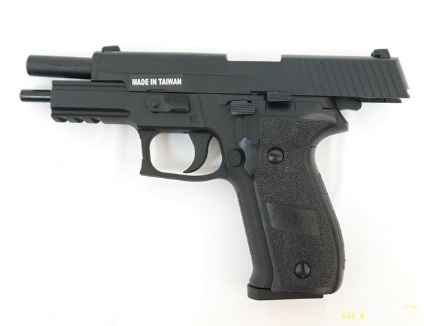 Конечно у меня были эйрсофт образцы от прародителя этой модели пистолета Р226 от японской компании Tokyo Marui SigSauer P226R и тайваньской компании KJW. Могу сказать честно ни тот ни другой не зашел. Маруевский образец это конечно пластик на раме и затворе, очень точная и нежная конструкция склонная к трещинообразованию и небольшим поломкам. Скорее всего из-за использования более злых газов, чем рекомендованный мягкий 134а.