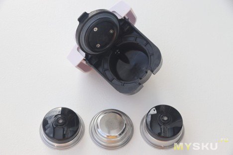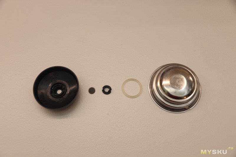 К нему прилагается три ситечка. Два для молотого кофе (на одинарную и двойную порции) и одно для чалдов (в центре). Его мы позже испытаем.