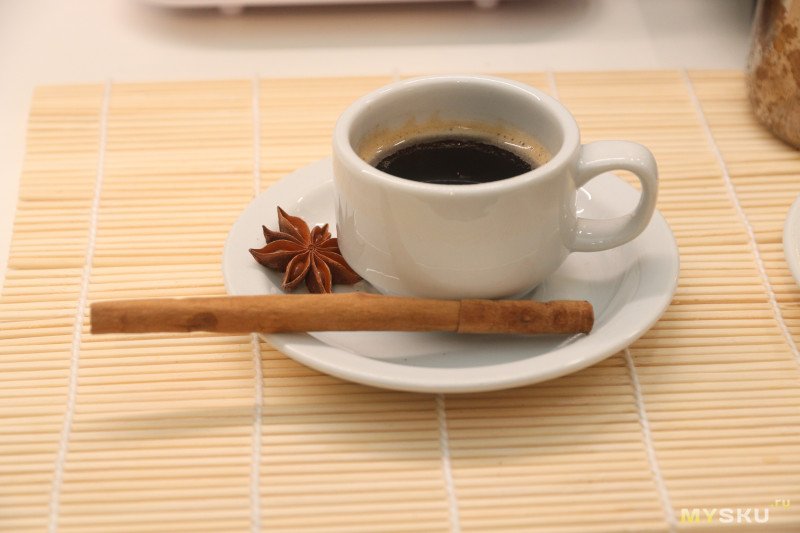 Кофе в итоге получается вполне хороший. Мягкий вкус, сильный аромат, без горечи и дымного привкуса.