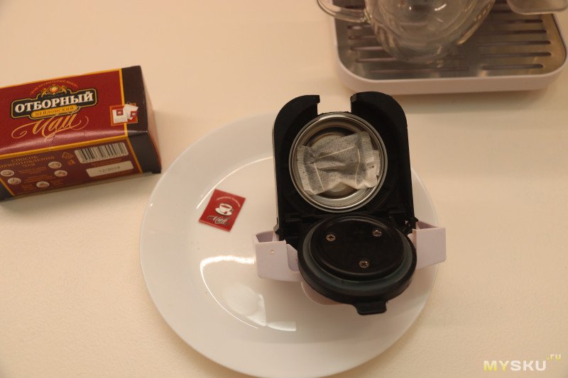 Получается вполне хорошо. Даже без давления – одной лишь температурой получаем приличный чай. Для сравнения я заварил рядом второй такой же пакетик традиционным способом – кипятком из чайника.