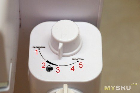 Исследование показало, что по мере приближения рукоятки к пункту «очистка» молока добавляется все меньше, но вспенивается оно интенсивнее. Воды же в чашку попадает одинаково во всех режимах.