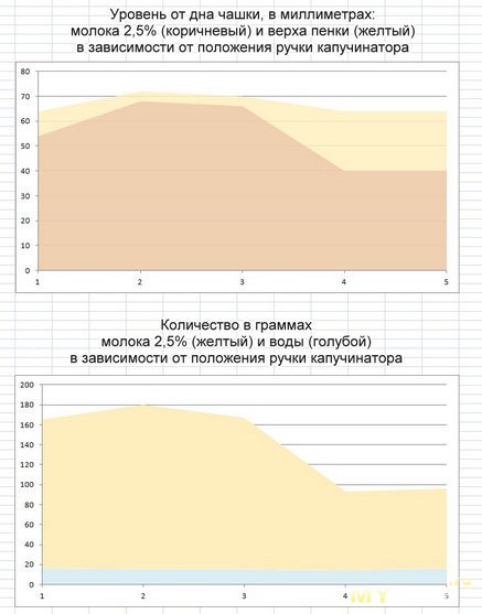 Чтобы не перегружать текст, я приведу фото и итоговые графики молока и пенки.