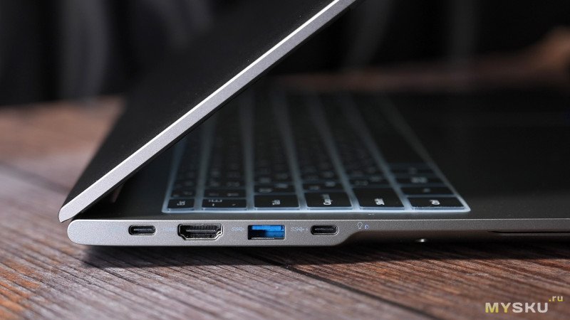 Все USB-C в ноутбуке — полнофункциональные, работают на скоростях до 10Гбит/с, через них же ноутбук заряжается от 100 Ваттной зарядки, и можно выводить изображение на внешние мониторы.