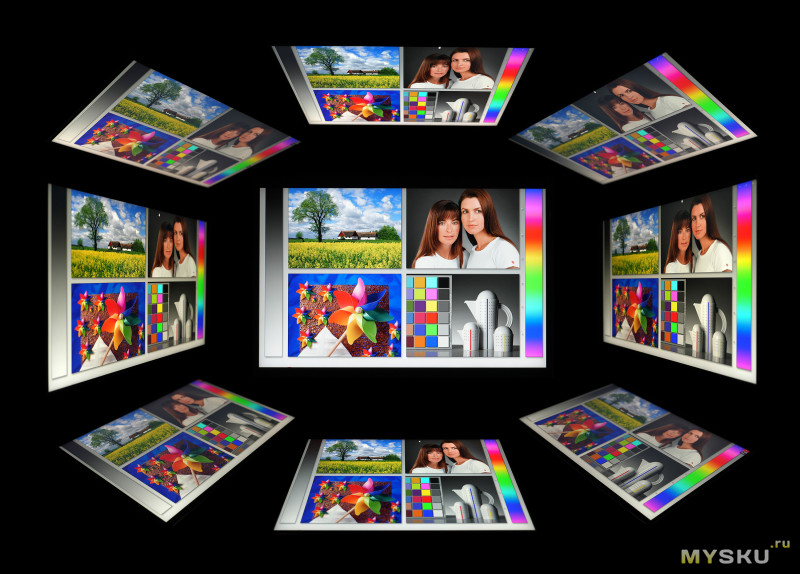 Если смотреть на дисплей снизу, сверху, слева и справа, то углы обзора отличные. Но при взгляде по диагонали можно заметить падение контрастности.