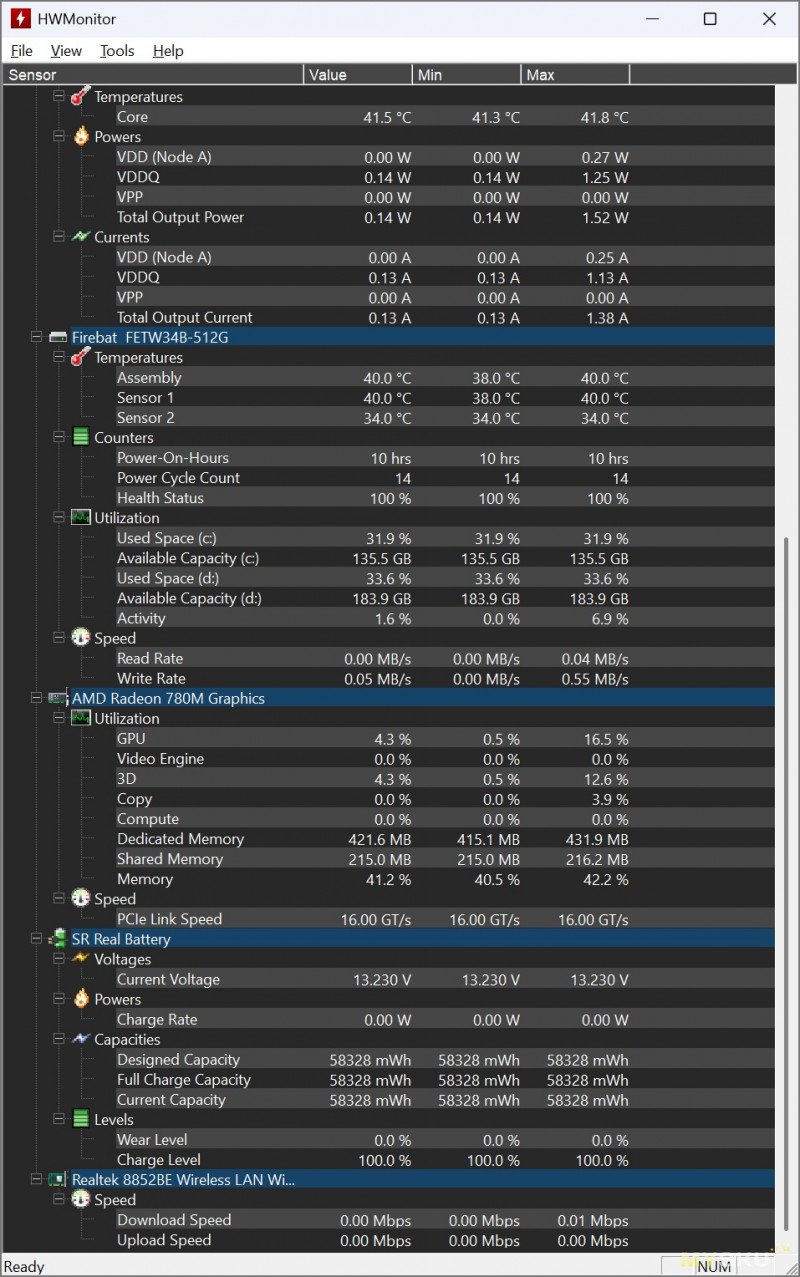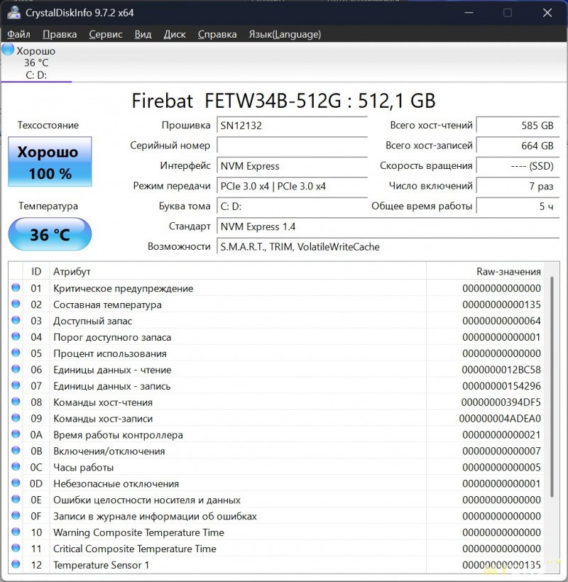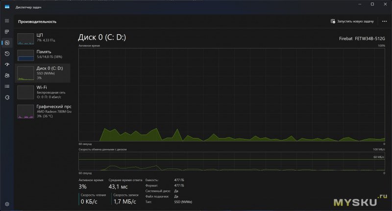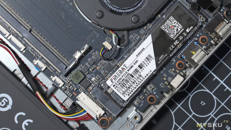 Под ОС и хранение данных имеется NvMe SSD-накопитель ёмкостью 512 Гб от того же вендора Firebat. Работает на шине PCI-E 3.0 x4.