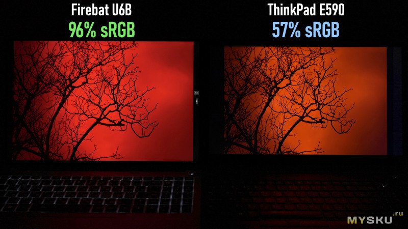 Чем хорош полный или даже почти полный охват цветового пространства — это натуральным отображением на матрице красного цвета. Дисплеи с неполным цветовым охватом так не могут — если вывести через дисплей картинку в красных цветах, то вместо красного будут отображаться морковно-оранжевые оттенки. Ниже добавил сравнение двух дисплеев для ознакомления.