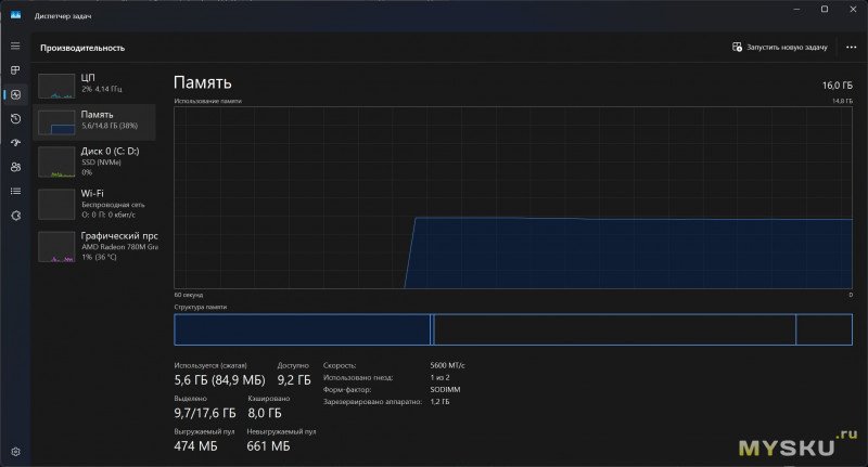 | Память RAM | 16 Гб DDR5 So-Dimm, 2 слота |