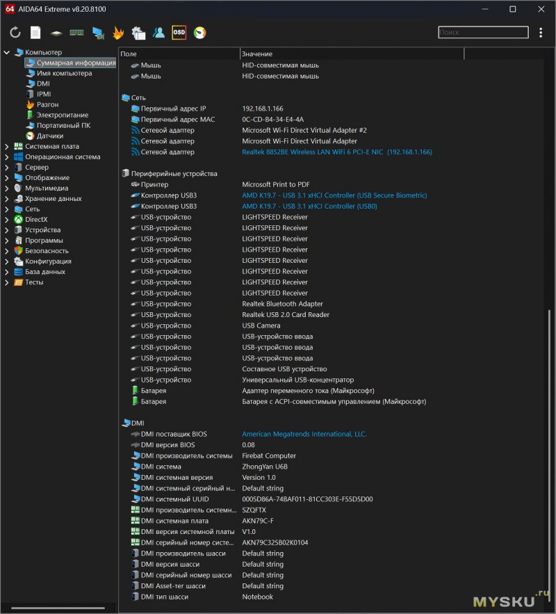 Суммарная информация AIDA64