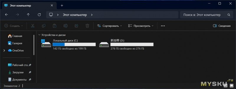 SSD-диск имеет доступный для пользователя объём 475Гб, в данном случае он был разбит а два логических диска. Сама система занимает порядка 57 Гб от общего пространства.