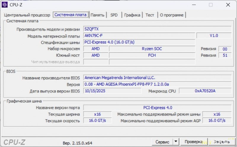 Информация CPU-Z
