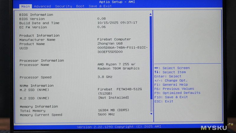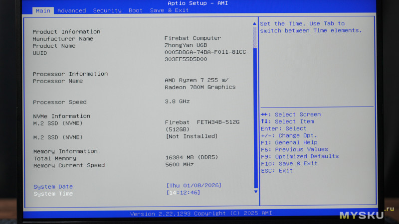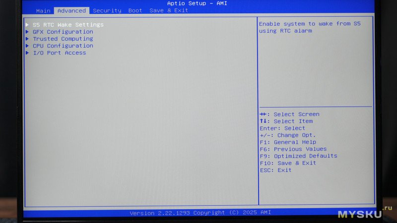 Войти в BIOS можно через F2. Набор настроек небогат.