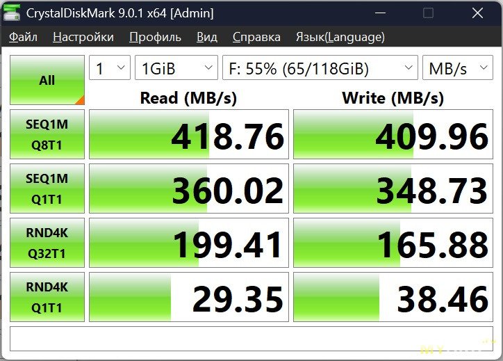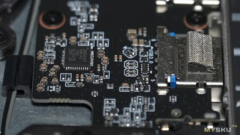 USB-A порты синего цвета тоже поддерживают высокую скорость обмена данных. Для теста я подключал внешний SATA-накопитель.