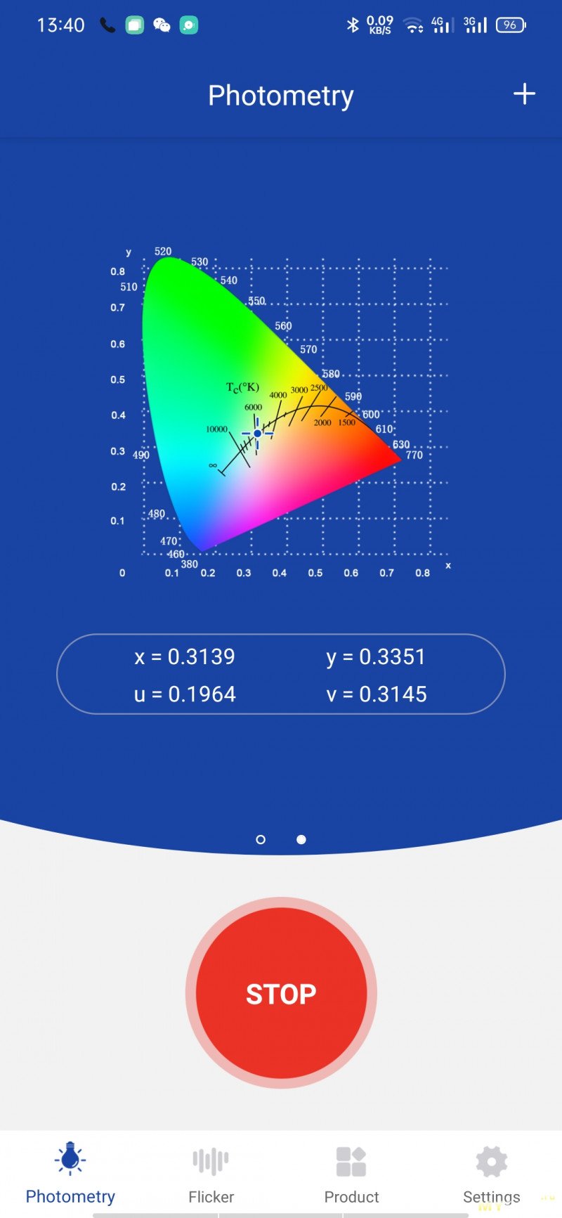 Информация из программы Opple Light Master Pro