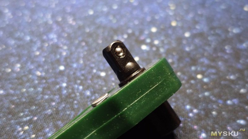 Патрон имеет внутри магнитный держатель для удержания бит, а на одной из сторон квадрата присутствует фиксирующий шарик, чтобы головки не соскакивали.