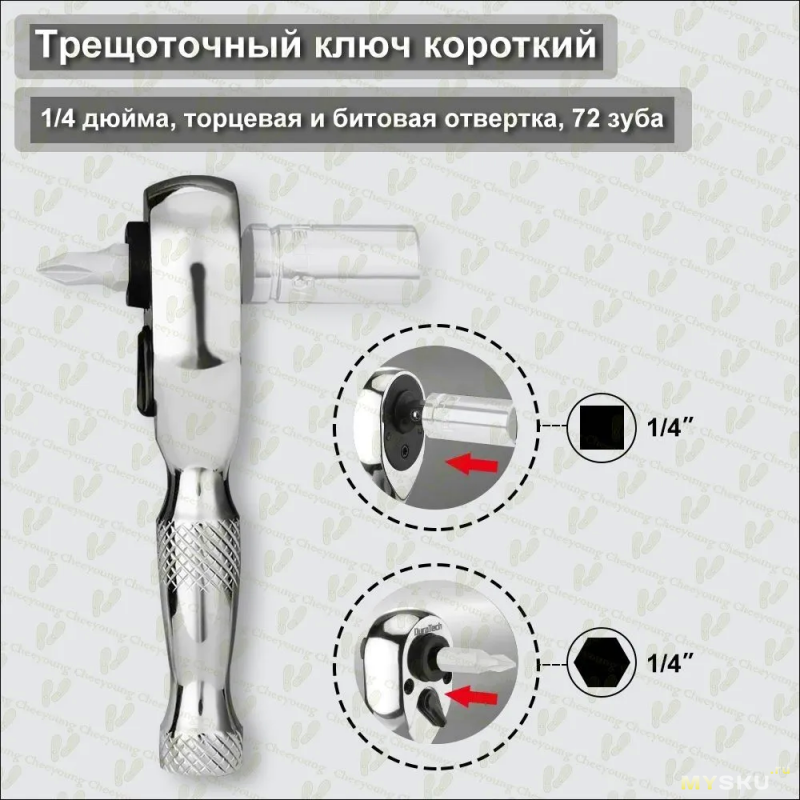 Небольшой торцевой ключ 1/4" с храповым механизмом и переключателем реверса