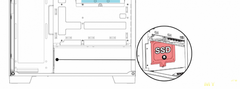 Инструкция гласит, что снизу, где отсек для БП, есть место для диска 2.5".