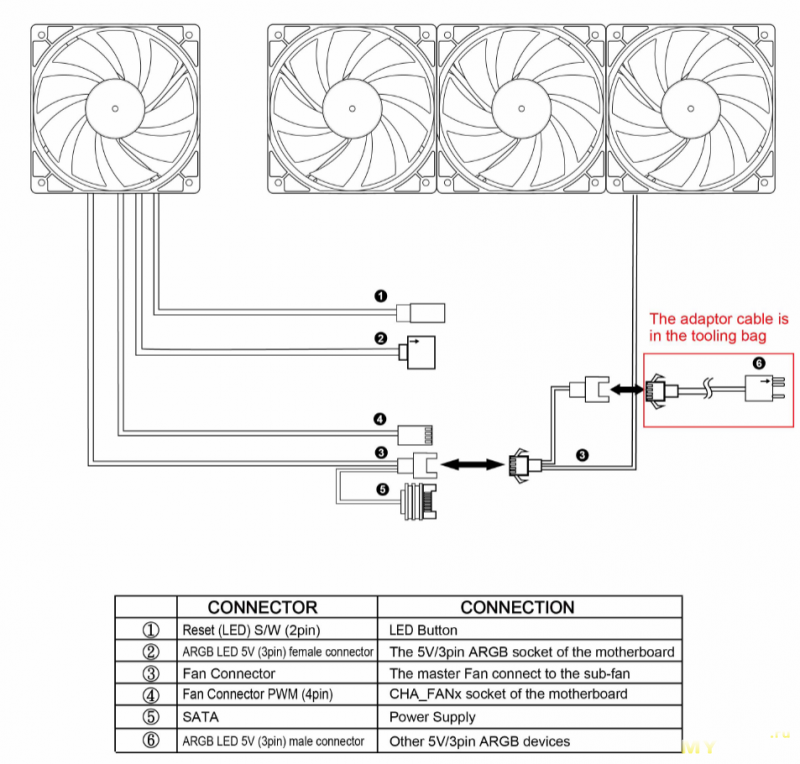 | Адресная RGB-подсветка (ARGB) | Вентиляторы с ARGB управляются кнопкой на корпусе. Все ARGB-устройства могут синхронизироваться с материнской платой для прямого управления подсветкой через её ПО. |