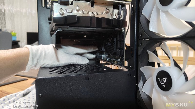 Дальше закидываем видяху и горизонтальную опору к ней.