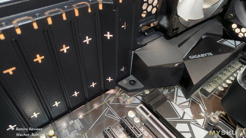 Стоит обратить внимание, что посадка материнки просчитана ровно: можно отделить заглушку, и мы не повредим материнку и не упремся в нее.