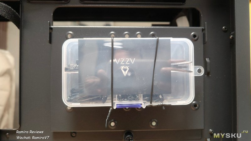 Там же на стяжках прикреплена коробочка с набором для установки материнки, за что отдельное почтение производителю – это не пакетик, который валяется внутри корпуса.