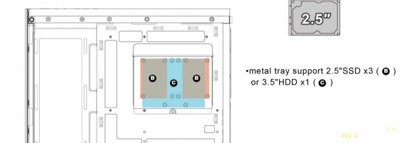 Инструкция гласит, что можно воткнуть или два диска 2.5", или один 3.5".
