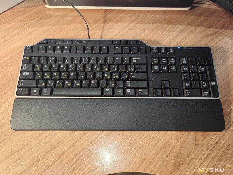 Каких-либо предпочтений по определённым клавиатурным технологиям и производителям не имею, лишь бы кнопатура была качественной и без экспериментов с раскладкой, то есть – стандартной. На работе много техники DELL и мне всегда нравились их клавиатуры, на сегодня это явно одни из лучших мембранных, не хуже Mitsumi Classic, особенно понравился поздний низкопрофильный вариант. Так что решил взять домой нечто подобное, но с мультимедийными клавишами, это моя слабость, я ими активно пользуюсь. Идеальная по этим критериям модель – KB-522, но у продающейся в нашей рознице русифицированной версии есть существенный для меня недостаток, бэкслэш рядом с левым шифтом. Так что решил купить ANSI вариант с длинными шифтами из Китая, благо сейчас в продаже имеются очень качественные наклейки по технологии двойного литья, более долговечные, чем иная заводская маркировка.