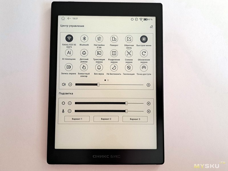 Свайпом справа сверху Центр управления. Тут мы можем настроить подсветку MOON Light 2, настойки сети, обновления экрана и многое другое