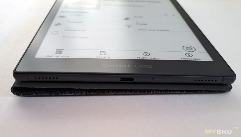 Забыл показать, что книга со сложенным чехлом по-прежнему тонкая — удобно удерживать одной рукой.
